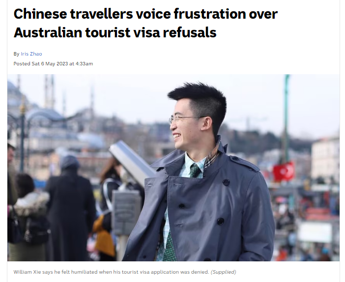谢先生也称,他的一些朋友也计划申请来澳旅游签证,但在得知他的签证被拒后,纷纷取消了旅行计划。“我提供了同样的文件去分别申请英国、法国和澳洲的旅游签证。但只有澳洲拒绝了我,我的朋友也不明白是为什么。”