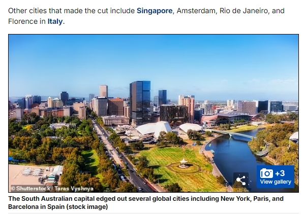 《Architectural Digest》选出了全球最美的20个城市,将阿德莱德排在第一位,描述其为集“冲浪、沙丘和装饰艺术建筑”为一体的地方。