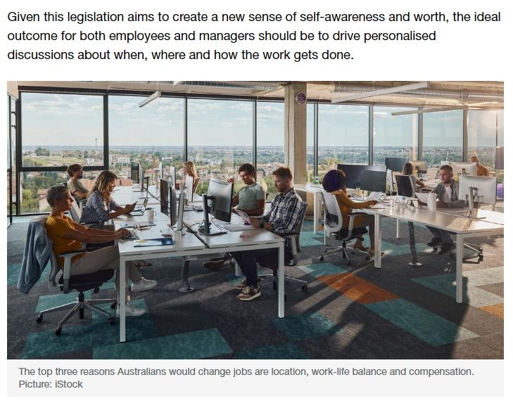 该法案的制定旨在促进更好的工作与生活的平衡,这是许多澳人迫切需要的。高德纳咨询公司(Gartner)最新的全球人才监测调查显示,澳大利亚员工的整体健康状况处于历史最低水平,为29.3%。