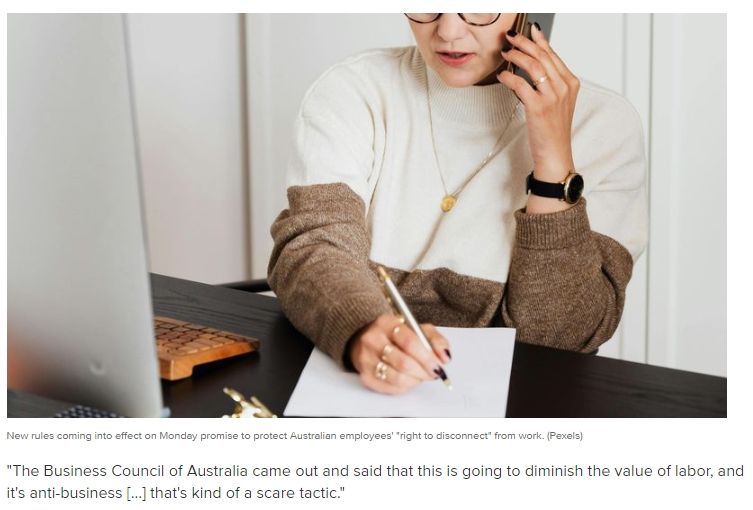对于拥有15名或更多员工的公司来说,8月26日,标志着职场历史上的一个重要转折点,因为“断线权(Right to Disconnect)”法案在澳大利亚生效。这意味着,如果老板在工作时间以外联系员工,员工可以拒绝任何形式的沟通,除非这种拒绝是不合理的。