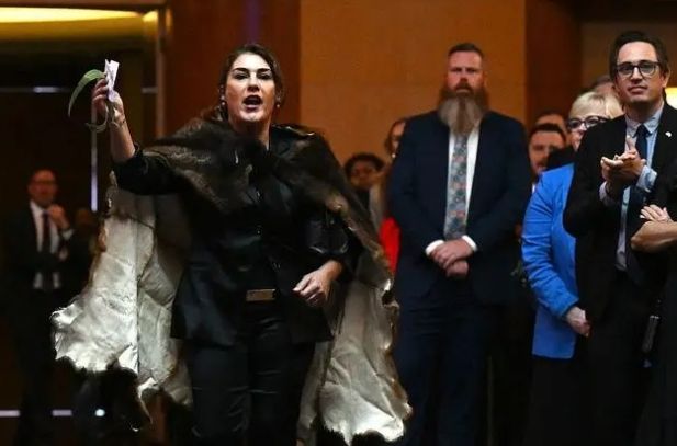澳大利亚议会大厦一名土著参议员喊话查尔斯。