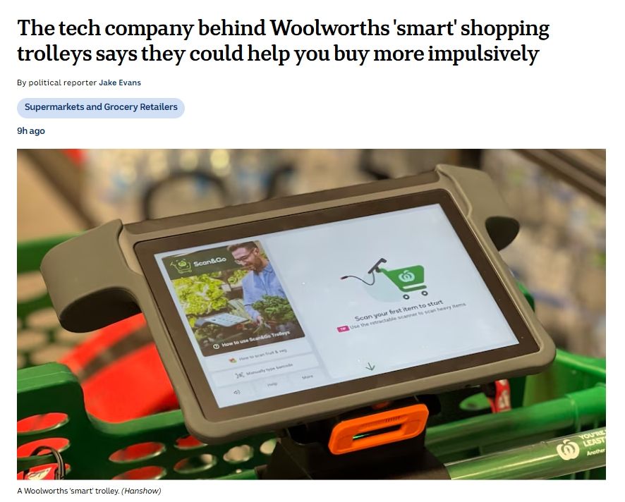 随着智能时代的到来,民众生活的方方面面已离不开智能科技产品。现在,智能购物车已经“强势”登陆澳大利亚,在给予购物者便利的同时,有研究发现,它似乎也会引导你“冲动购物”……