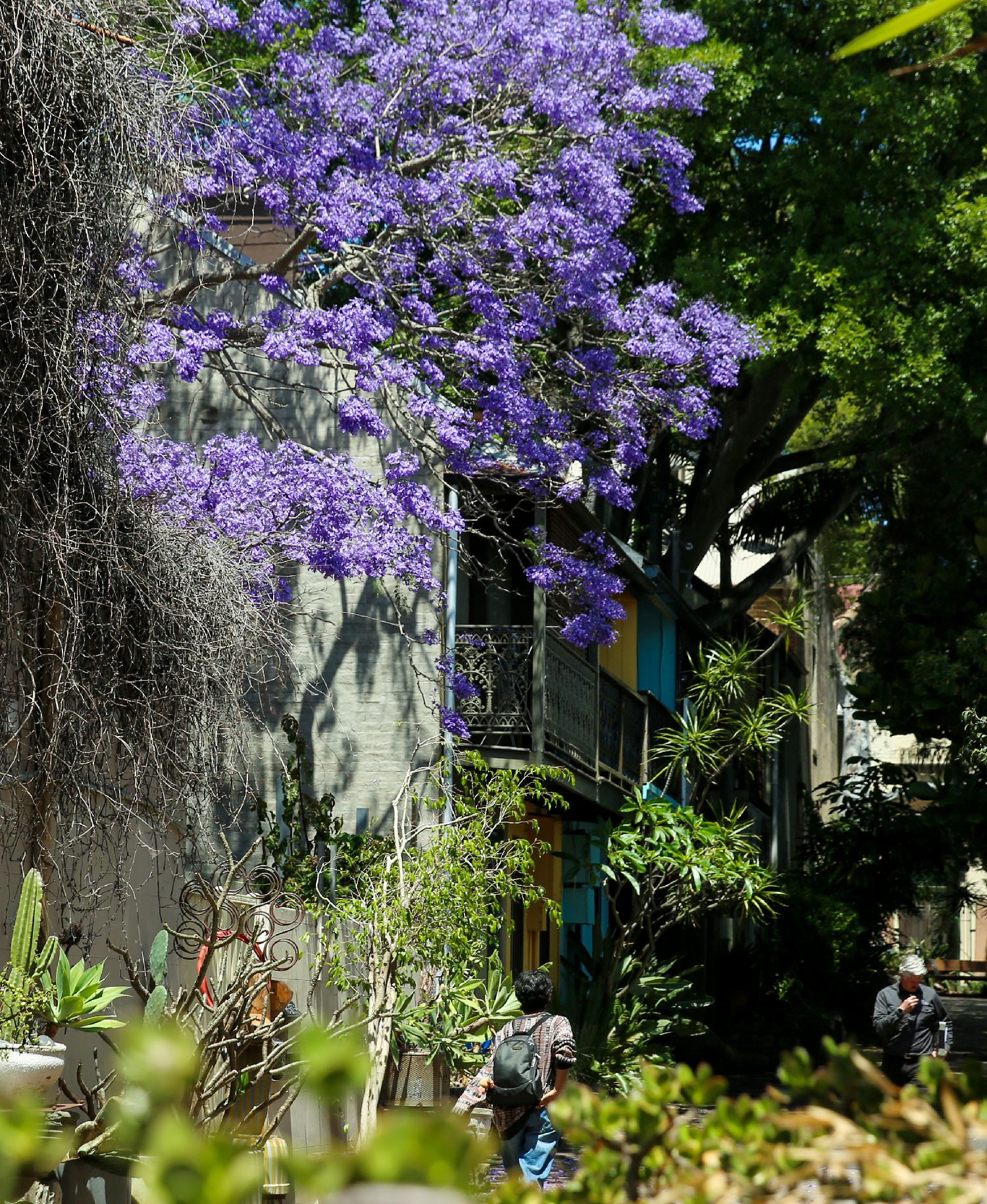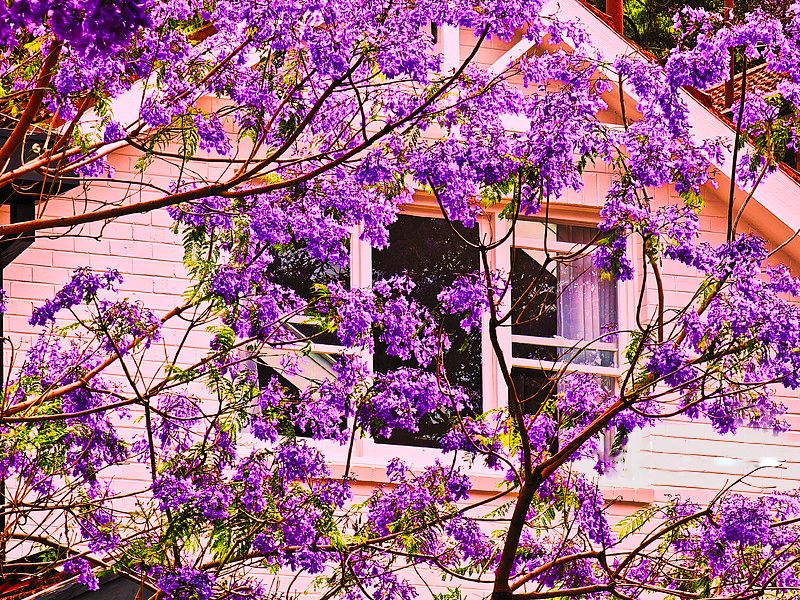 图为在澳大利亚悉尼,蓝花楹盛开在屋前。(CFP)