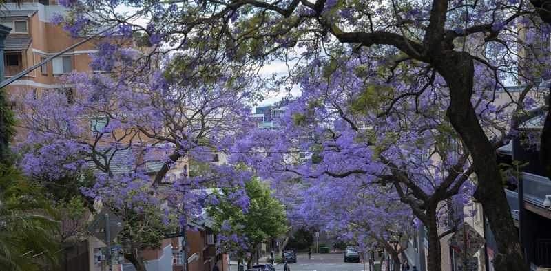 图为在澳大利亚悉尼,蓝花楹盛开。(人民网)