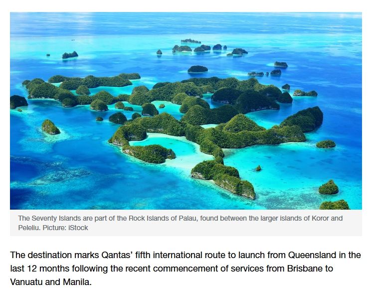 据悉,这条航线从布里斯班起飞,降落在帕劳的科罗尔(Koror),是澳大利亚航空今年年底即将开通的最新航线,首班航班定于12月7日,此后起每周通航一次。