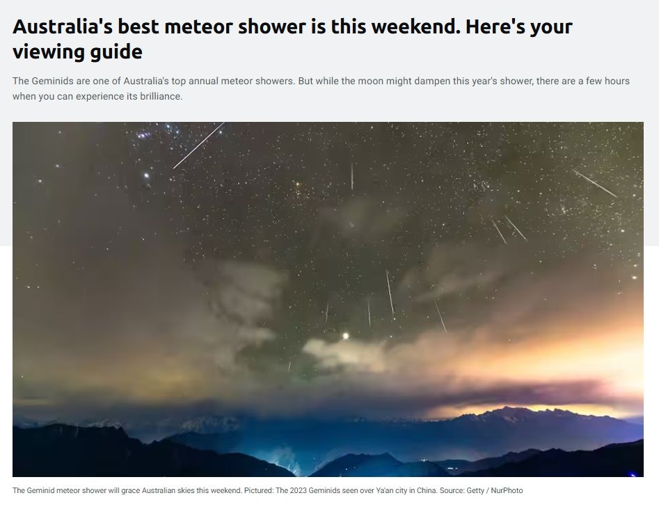 对于所有观星爱好者来说,本周末,他们将迎来一场盛大的狂欢,因为澳大利亚一年一度的顶级流星雨之一,双子座流星雨,即将“闪现”。