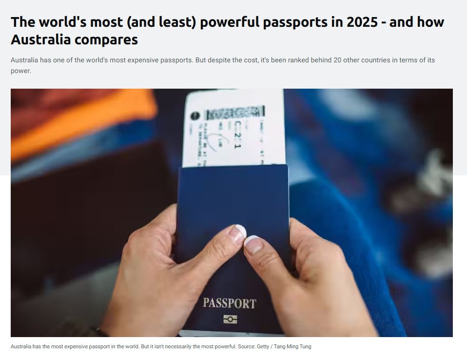 澳大利亚拥有世界上最昂贵的护照之一。但尽管价格昂贵,澳大利亚护照却并不是最强大的,其效力仍落后于其他20个国家。