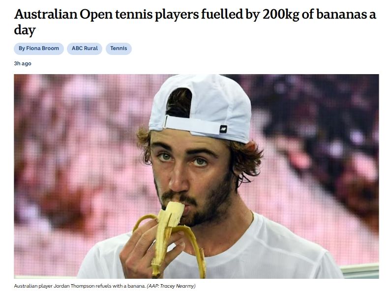 这是澳大利亚网球公开赛上最常见的景象之一,世界顶级网球选手在比赛间隙擦去脸上的汗水,然后……吃香蕉。