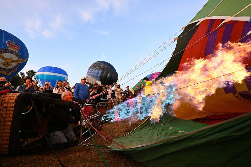 3月15日,人们在澳大利亚堪培拉热气球节上给热气球充气。(CFP)
