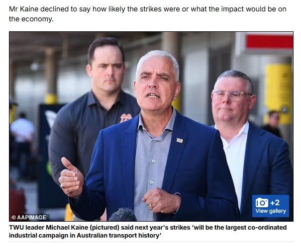 凯恩将此次罢工描述为“澳大利亚运输史上规模最大的协调一致的工业行动”。