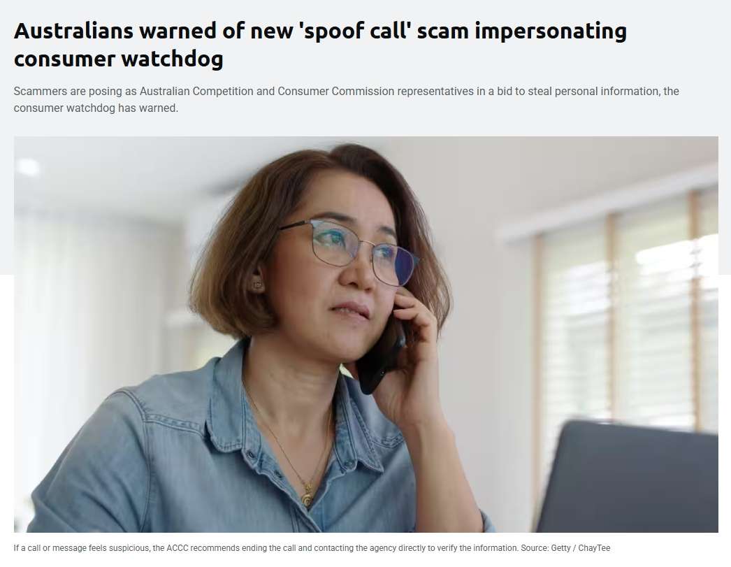 据报道,诈骗者利用ACCC的官方网站上发布的电话号码假扮成ACCC代表,向毫无防备的接听者索要个人信息。
