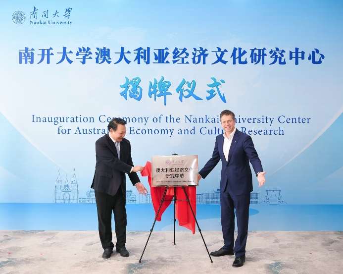 9月21日,南开大学校长陈雨露(左)与澳大利亚墨尔本市市长尼古拉斯·里斯共同为“南开大学澳大利亚经济文化研究中心”揭牌。