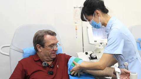 本月12日,澳大利亚籍献血志愿者皮安睿(老皮)在天津市血液中心完成了他人生中的第338次献血,也是最后一次。