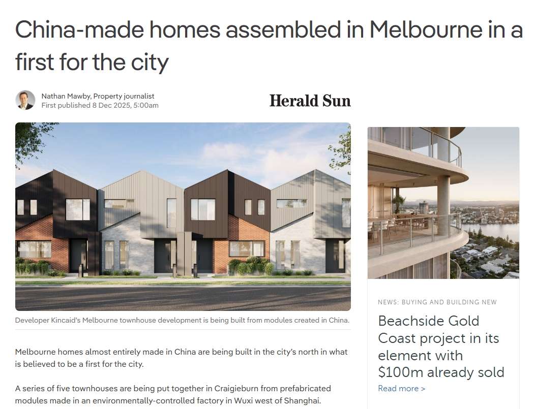维州城市发展研究所(Urban Development Institute of Victoria)执行董事艾利森(Linda Allison)表示,虽曾听闻部分住宅构件从中国进口,但规模如此之大的项目尚属首次。“行业内对此有不少讨论,因这与扶持澳大利亚本土产业之间存在一定矛盾。”她指出,无论是海外预制还是本土制造,该领域目前均处于起步阶段,随着监管政策的完善和技术进步,未来格局可能发生变化。