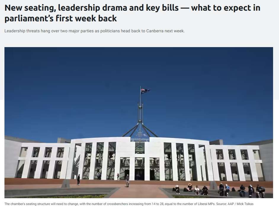 联邦议会将于本周复会,届时独立议员人数将“与反对党规模相当”,两大政党可能面临领导权之争,还有多项法案待审议。