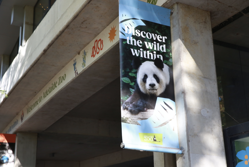 图为阿德莱德动物园门口悬挂的大熊猫海报。