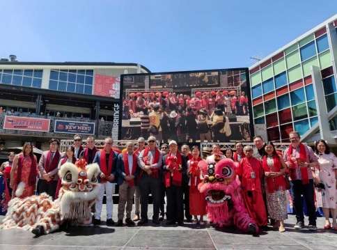 活动现场喜庆热烈,当地市民一同观舞狮、逛庙会、放鞭炮、领红包,共度欢乐中国年。(文章来源:新华社)