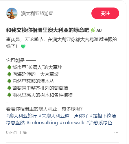 澳大利亚旅游局在小红书平台发起Color walk活动。(图片来源:小红书截图)