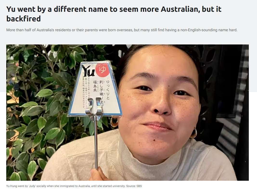 SBS电台节目近日深度关注了一个现象:在澳大利亚,超过半数人或他们的上一代出生在海外。很多人,特别是华人发现如果自己的本名听起来不够有“英语味儿”,那在上学、求职等生活场景中便处于人生“困难模式”。