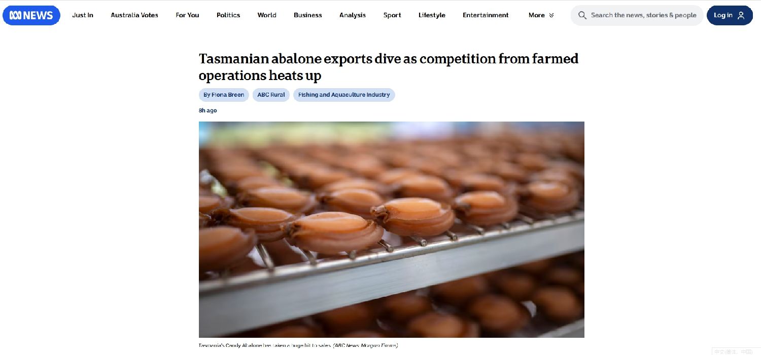 随着需求停滞和出口价格暴跌,塔州的鲍鱼产业正在面临困境。