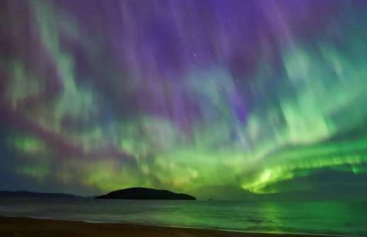 1月20日在澳大利亚塔斯马尼亚首府霍巴特附近南湾海滩拍摄的极光。