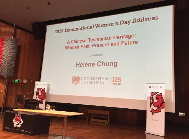 3月8日,为了纪念3.8妇女节,塔斯马尼亚大学邀请了Helene Chung举办讲座,Helene Chung就是前面提到的Charles Chung的女儿,Peter Chung的堂妹。Helene曾经在塔斯马尼亚大学她学习文学和历史,学校相信她的故事能够给更多女性带来启发,鼓励和勇气。Helene讲座的内容是:一位塔州华裔女性的过去,现在和未来。当天共有一百多人前来听讲,并在讲座最后和Helene现场交流。