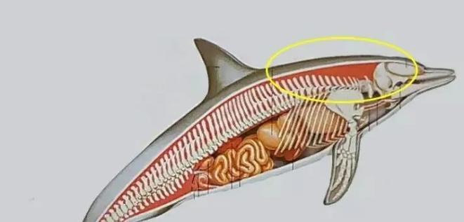 这就是为什么鲸绝对不可能长成蝌蚪形!这组巨大的肌肉是负责牵引头部的,毕竟头骨那么沉重,如果没有,那么动物就根本抬不起头了……