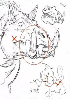 由于在杨氏钟健龙的复原当中,肌肉的情况更多的会被羽毛所掩盖,所以我在这一步是参照了现代鸟类,大致在草稿纸上确定肌肉复原轮廓,由此就制作出了相关的前期工作的结构参考示意图。