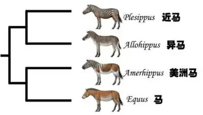 这一时候,复原绘师通常还会利用作品表达自己所倾向、支持的学术观点。我在这里展示的一张部分马的演化图就表达了在马类分类和演化关系上的观点——我赞成埃森曼将真马属划分为四个属的研究结论,而没有采纳这些是真马亚属的传统观点。