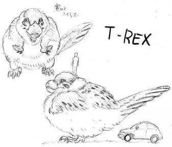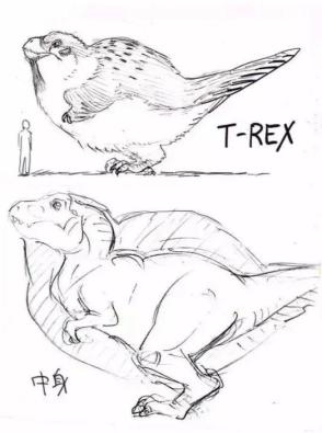 漫画家画的“霸王龙复原图”——然而对于霸王龙来说,羽毛可能是非常累赘的东西。