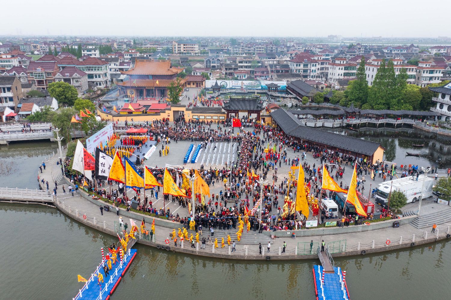 4月18日,大型民俗活动中国江南网船会在浙江省嘉兴市秀洲区王江泾镇莲泗荡风景区举办,江浙沪一带渔民、船民纷纷驾船前来赶庙会,呈现一场“水上民俗盛宴”。网船会起源于清末民初,是当地渔民自发组织的原生态民俗祭祀活动。百余年来,江南网船会已成为渔民、船民自己的盛大节日,2011年被中国政府列入国家级非物质文化遗产名录。