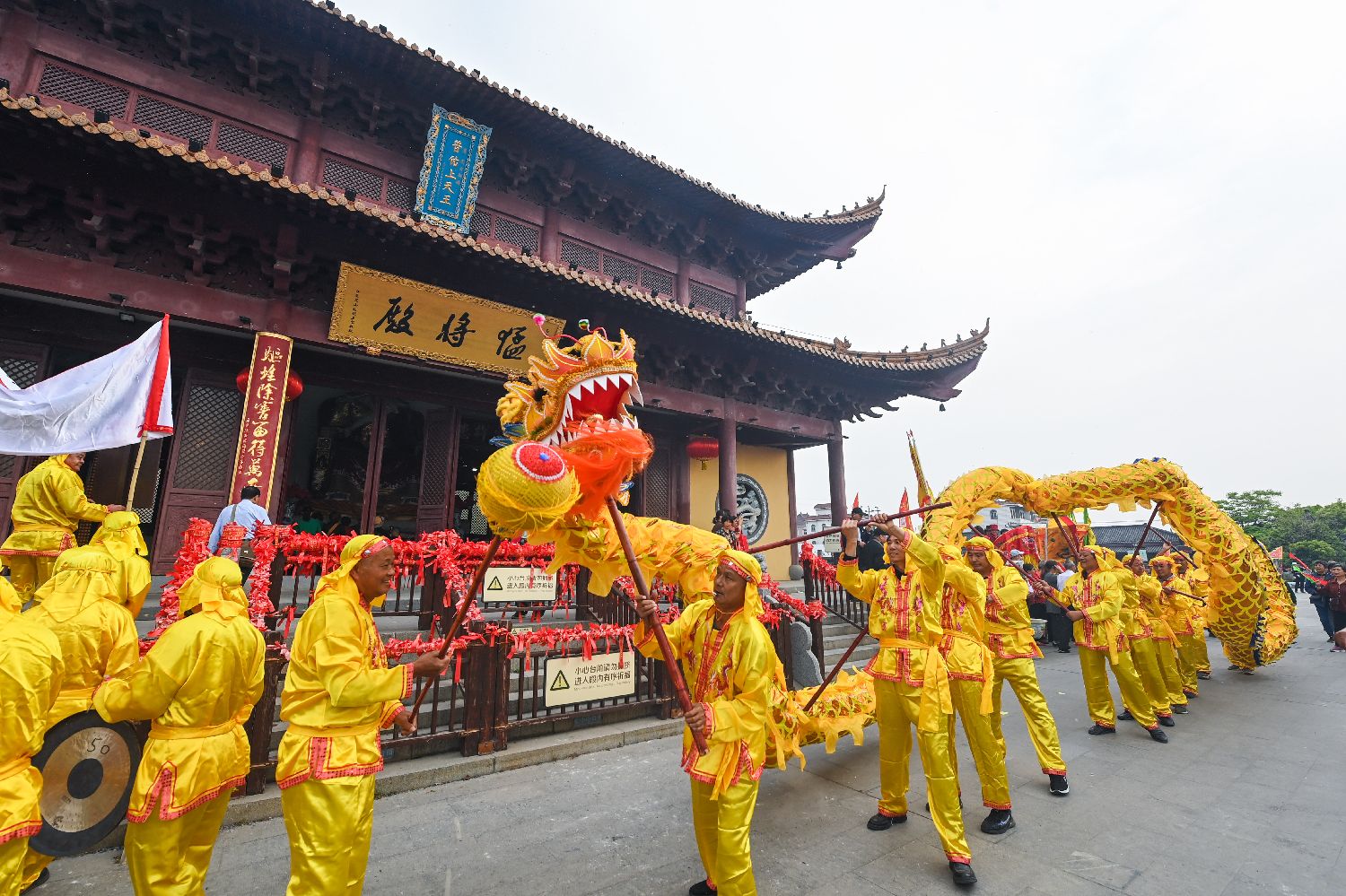 在网船会上,各地渔民、船民自发表演宝卷、神歌、龙舞、狮舞、莲湘、挑花篮、荡湖船、高跷、大纛旗、清音班、抬轿、腰鼓、戏文、踏白船等原生态民间艺术,前后持续一周左右,人山人海、热闹非凡。图为4月18日,传统舞龙表演在王江泾镇莲泗荡的网船会现场举行。(新华社)