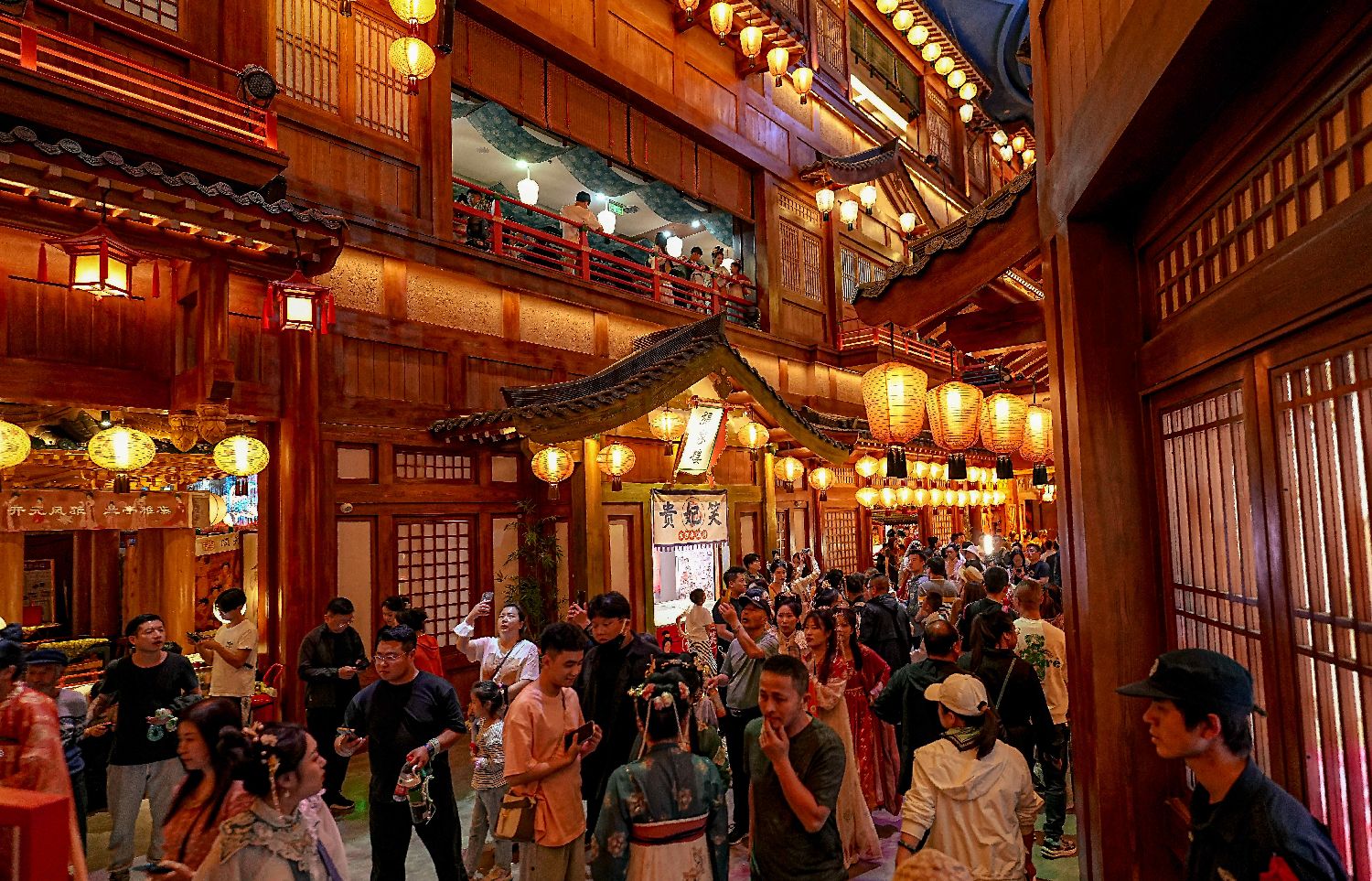 中国“五一”假期,“长安十二时辰”沉浸式唐风市井生活街区内游人如织。
