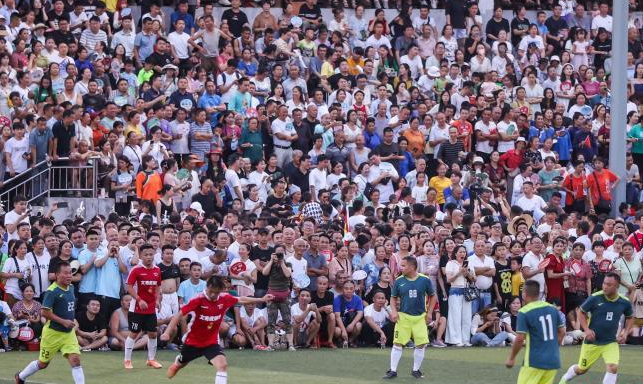 超远吊射、倒挂金钩、脚后跟破门……虽然绿茵场上的球员不是职业选手,但他们在场上奔跑的样子展现了对体育的热爱和对生活的自信。