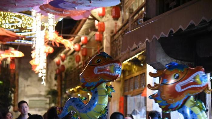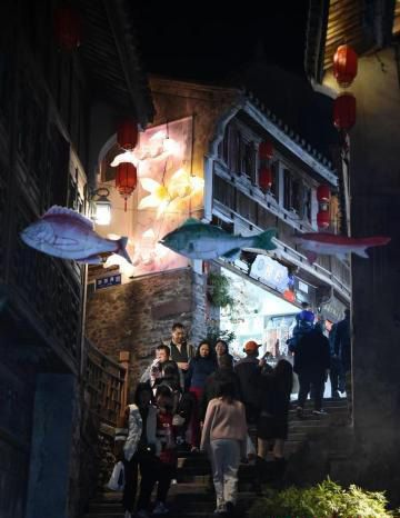 2月13日,农历大年初四,浙江宁波象山县石浦渔港古城张灯结彩,夜色迷人,吸引不少游人前来欣赏海洋特色的鱼灯。