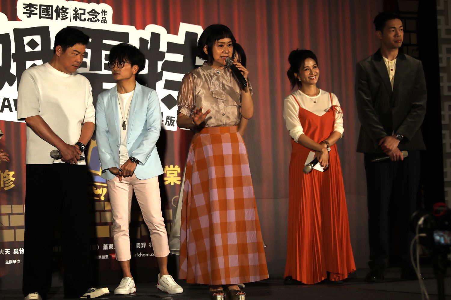 6月19日,《莎姆雷特》经典版艺术顾问、李国修遗孀王月(前排中)在台北出席记者会,回顾了李国修创作《莎姆雷特》的故事,以及李国修逝世后亲朋好友对他的怀念。