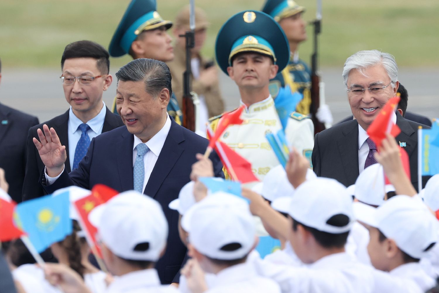 专机抵达阿斯塔纳纳扎尔巴耶夫国际机场时,哈萨克斯坦总统托卡耶夫率政府第一副总理斯克利亚尔、副总理兼外长努尔特列乌、总统外事顾问卡济汉、阿斯塔纳市长卡瑟姆别克等高级官员热情迎接。身着盛装的哈萨克斯坦女青年向习近平献花。