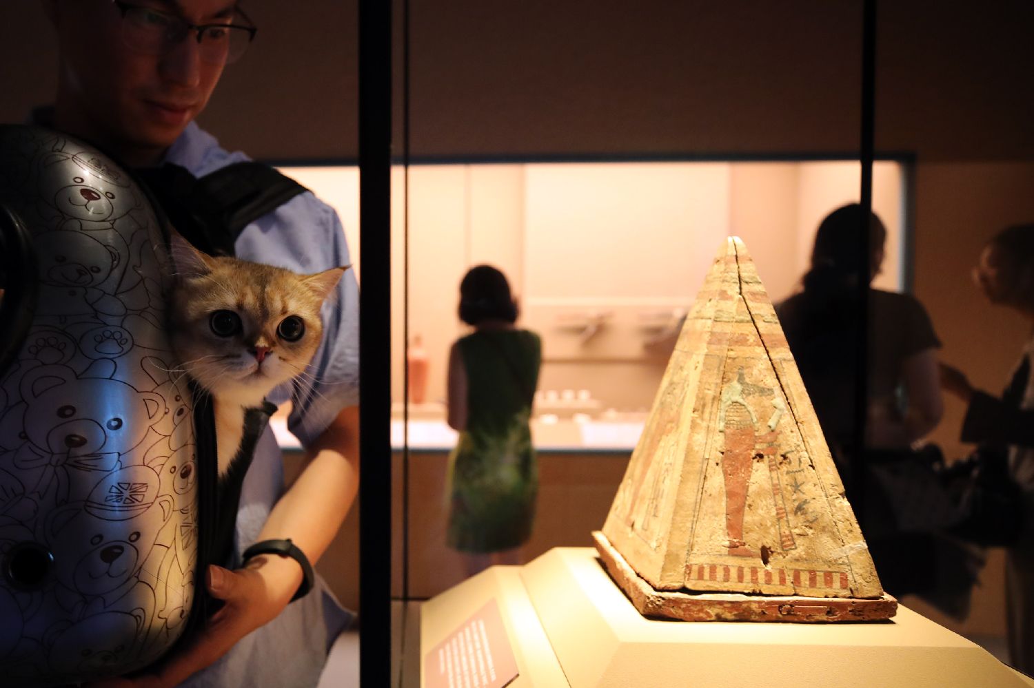 上海博物馆27日迎来首场博物馆“奇喵夜”活动。200只精心打扮的宠物猫在主人的带领下齐聚“金字塔之巅:古埃及文明大展”,开启奇妙的观展体验。