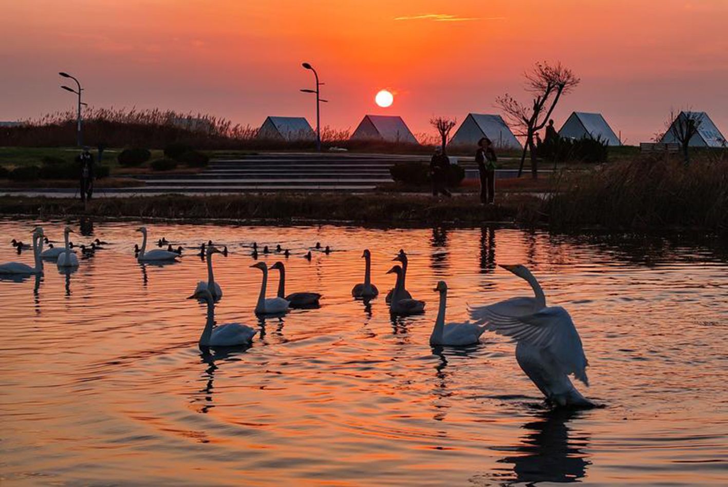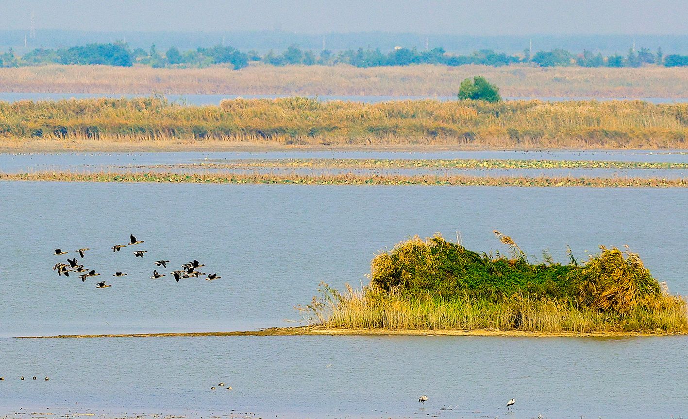 11月13日,湖北武汉,候鸟在沉湖湿地栖息。(中新社)