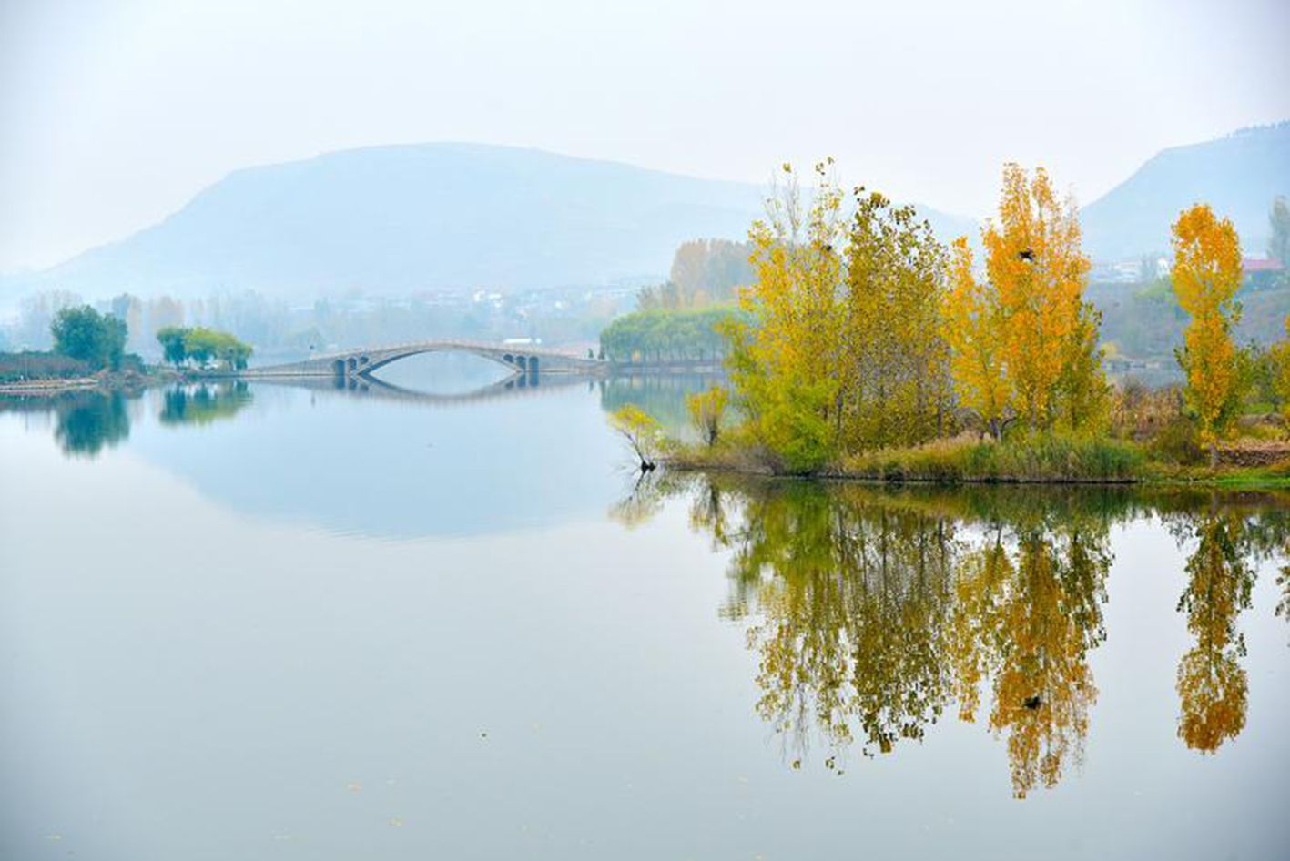 11月12日拍摄的山东省枣庄市山亭区辛庄水库水利风景区。(新华社)
