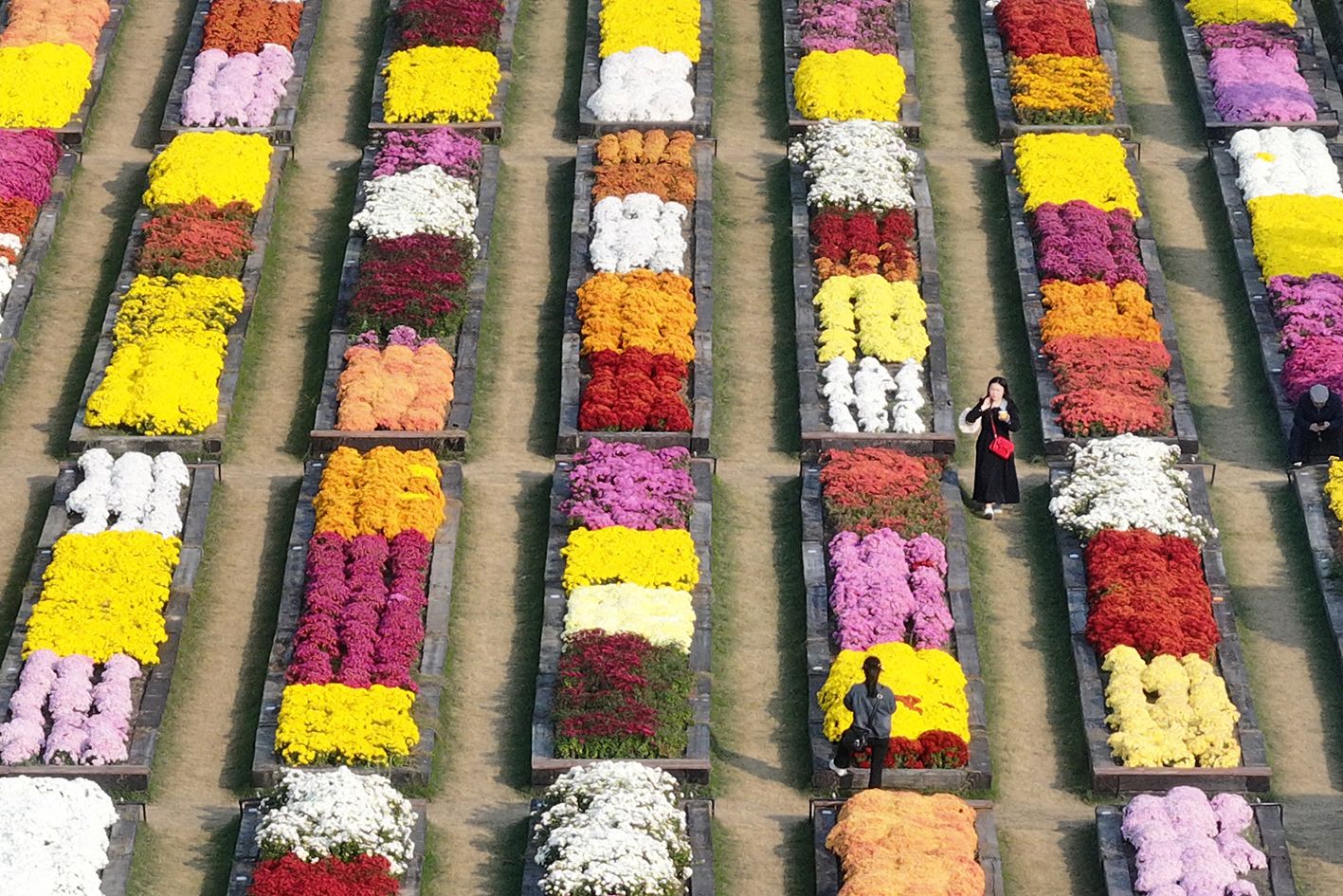 11月12日,航拍南京农业大学菊花基地,姹紫嫣红呈现斑斓世界。(中新社)