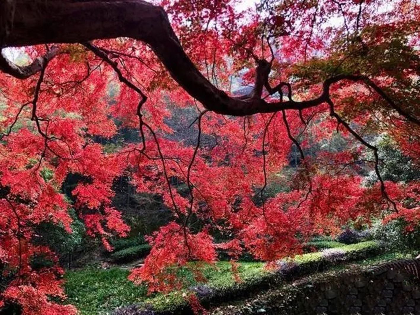 图为中国全国重点文物保护单位莫干山别墅群—62号别墅的红枫。(中新网)