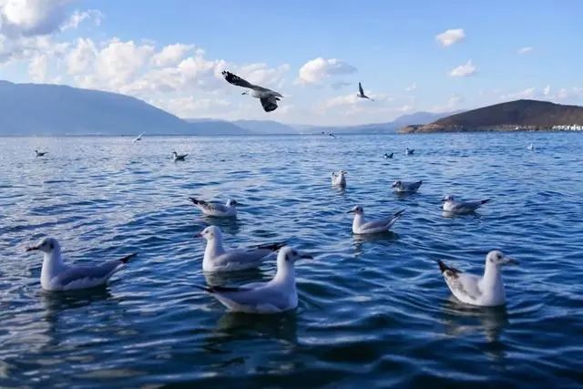 图为云南大理州,成千上万只海鸥在海面上起舞、休憩,吸引了众多市民游客观看。(云南大理文旅融媒)