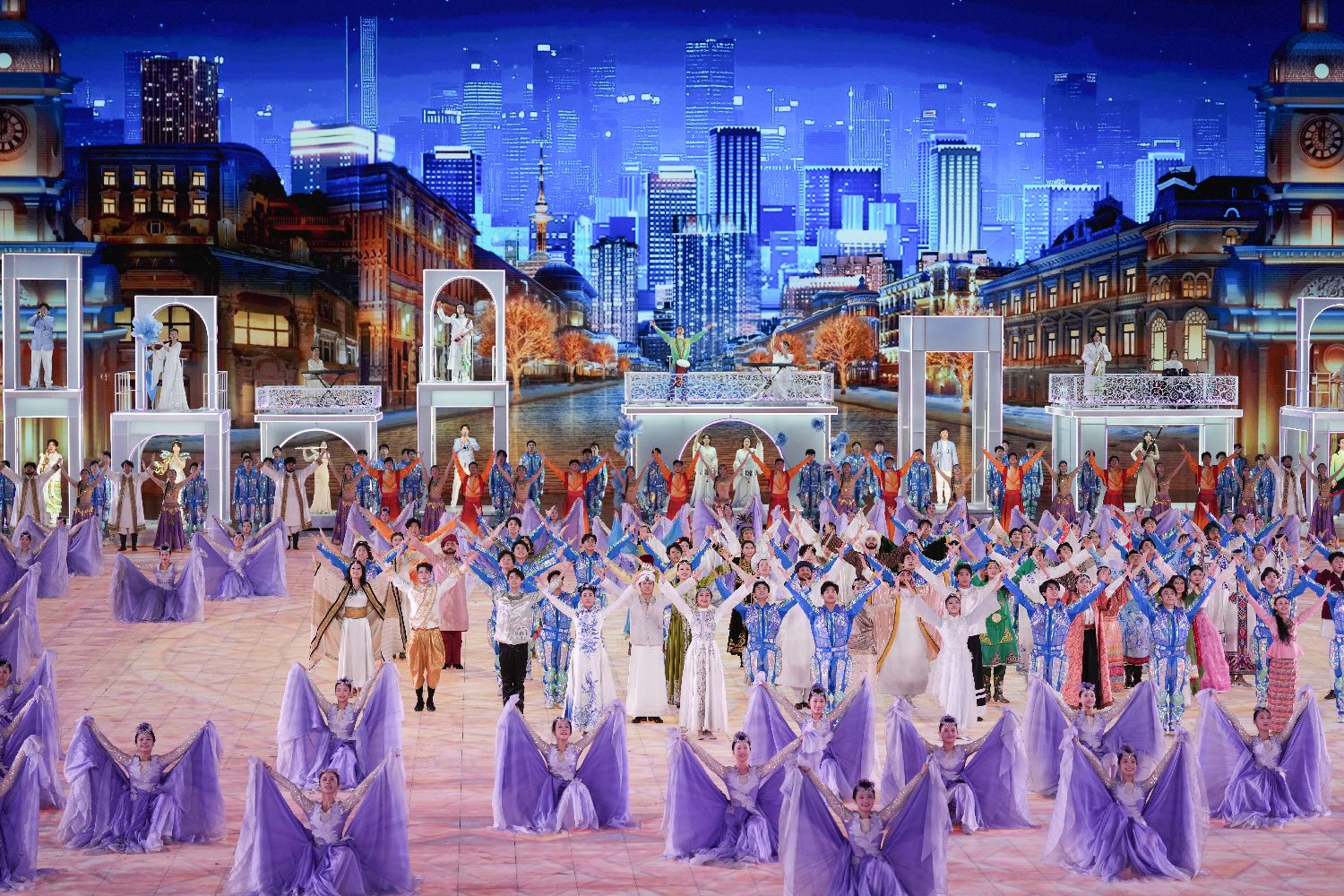 2月7日,第九届亚洲冬季运动会开幕式在哈尔滨举行。图为开幕式现场文艺展演。
