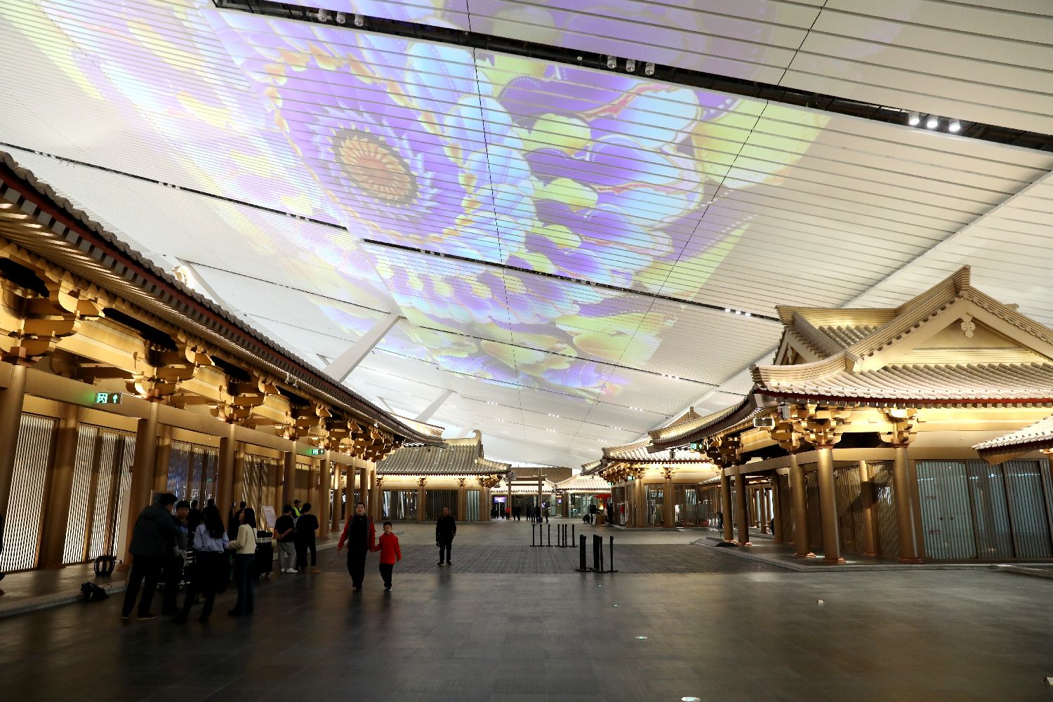 图为T5航站楼内的仿古建筑。(中新社)