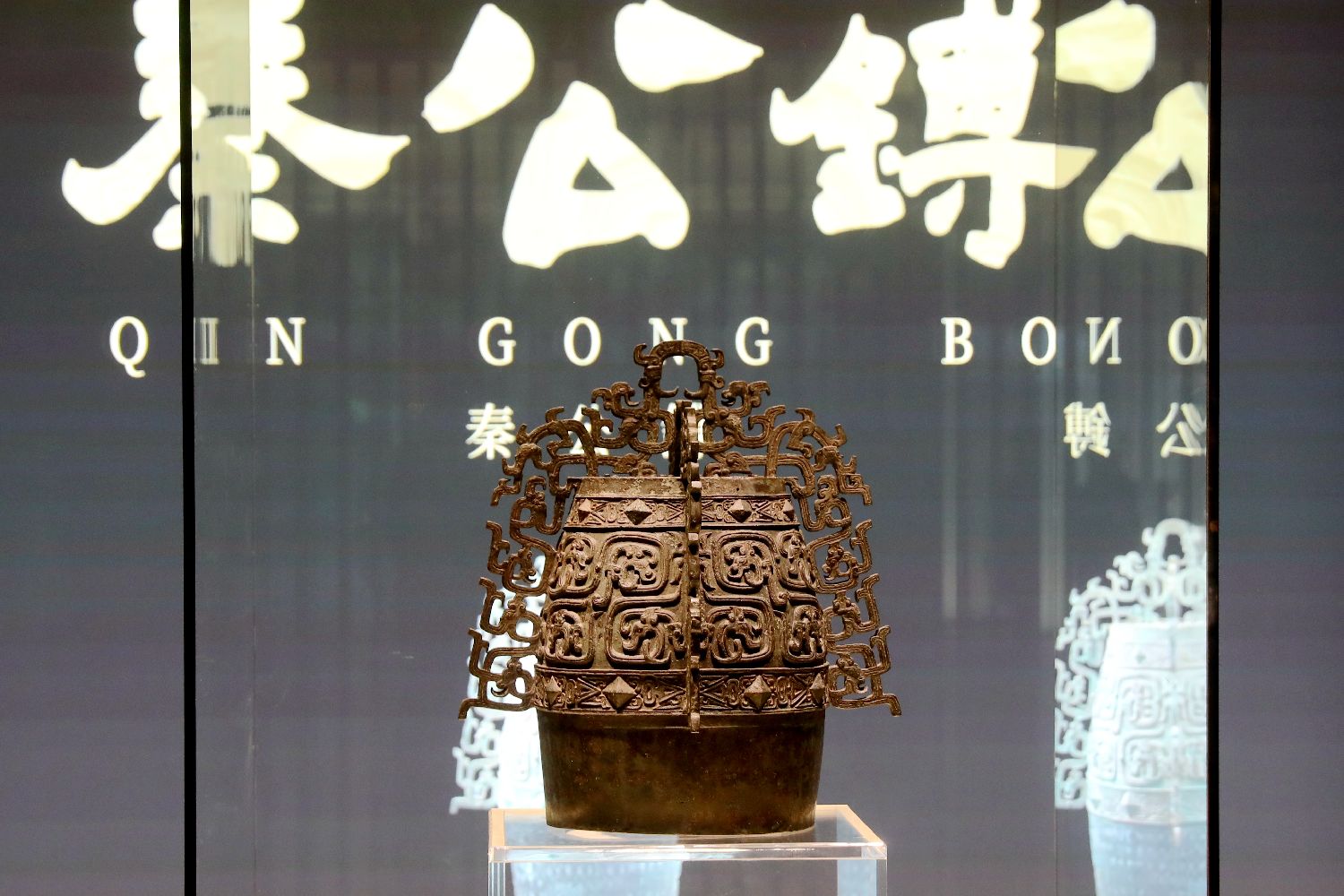 图为珍宝馆内展出的国家一级文物“秦公镈”。(中新社)