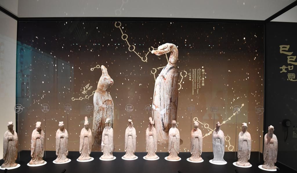 图为机场博物馆展出的文物:陶十二生肖俑(唐代)。(新华社)