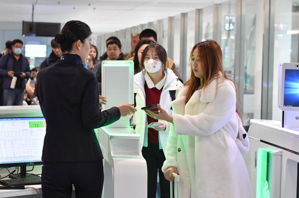 2月20日,乘客在西安咸阳国际机场T5航站楼登机口检票登机。(新华社)
