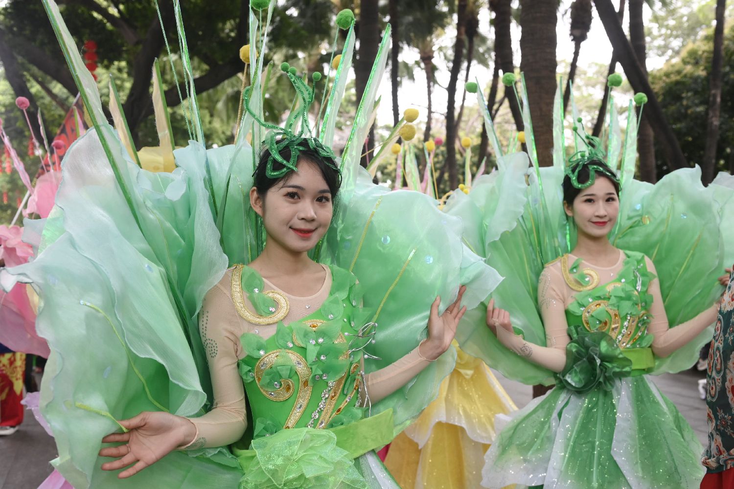 3月31日,广州市荔湾区,第十五届“荔枝湾·新西关”民俗文化活动之“三月三·荔枝湾”——上巳春归 北帝诞 长桌宴在荔枝湾景区拉开帷幕。图为花仙子。(中新图片)