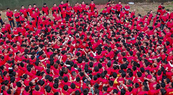 3月30日,广西梧州,苍梧旺甫镇胜坡村举行“三月三”抢花炮活动,现场人山人海,热闹非凡。(CFP)